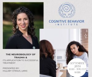 Cognitive Behavior Institute is excited to welcome Hillary Straus, LMHC for a live interactive webinar on: The Neurobiology of Trauma and Its Application to Successful Treatment